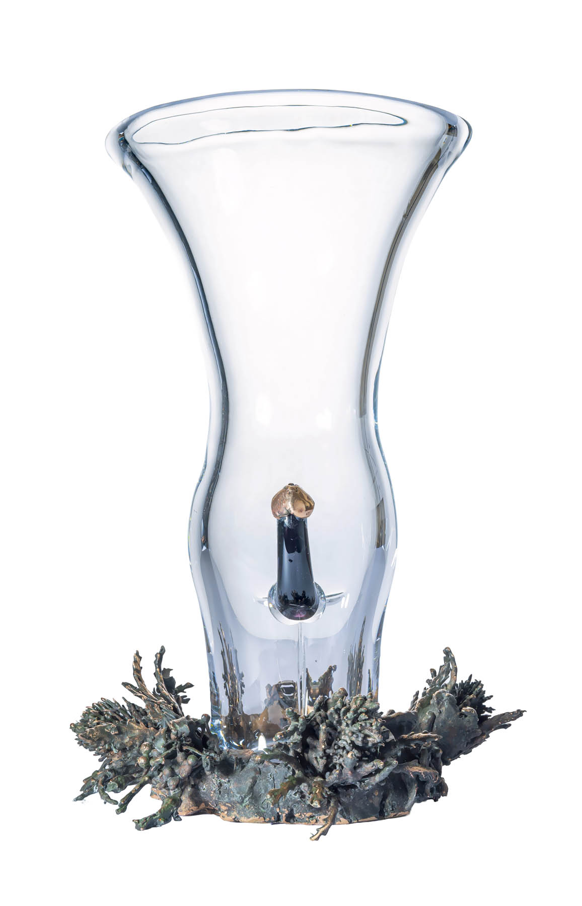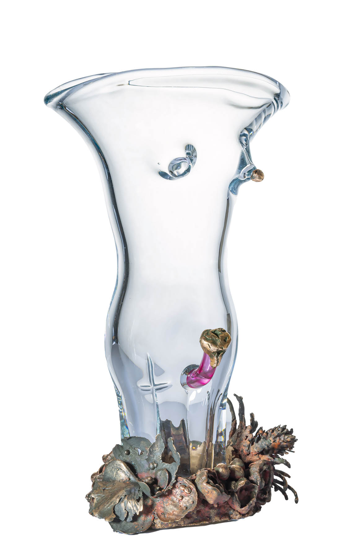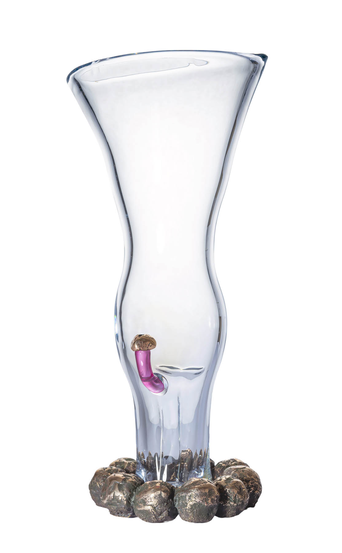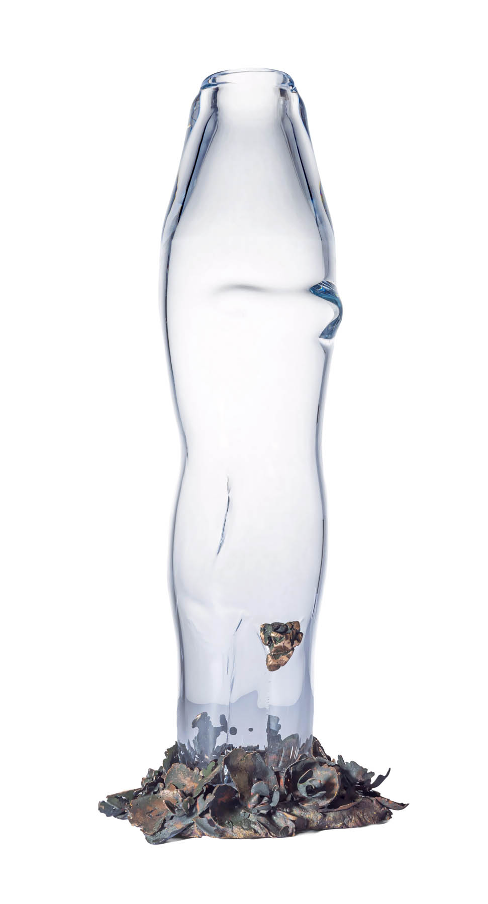 She sensitively responds to the dialogue of diversity by creating series of unique pieces for the first time in her career, using blown glass as a tribute to Bořek Šípek, the legendary architect, designer and above all, glass visionary. This fragile, translucent material is combined with solid bronze which gives stability to the whole composition. The Objects Happy even after…, Happy and Free, Happy and Spiky, Happy and Full, Lots of Juicy, Fluffy and Full are sources of joy, merging forms that flirt with the eyes and senses of the viewer, as well as inviting them to immerse in thoughts of togetherness, free from hatred.