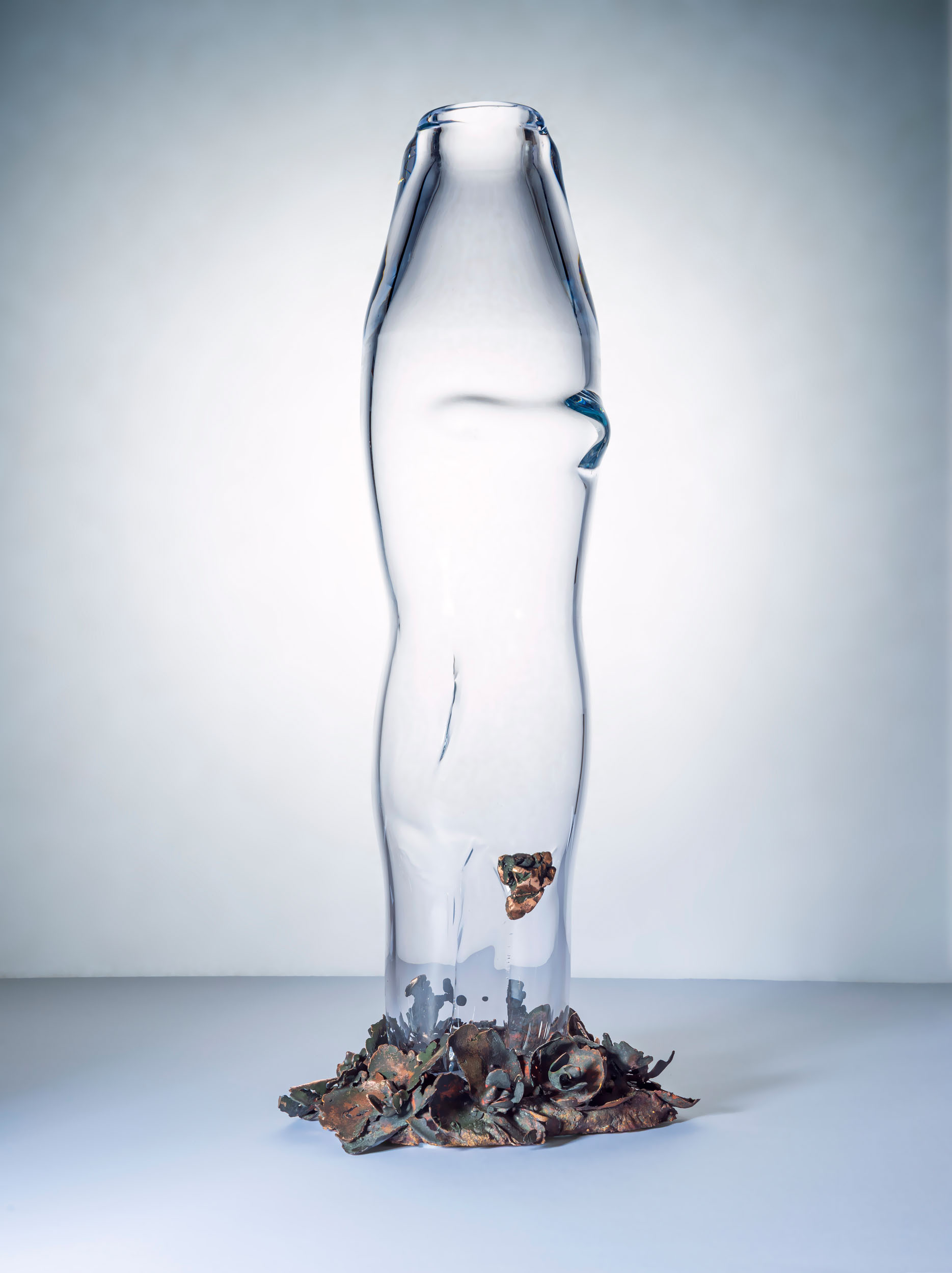 Lots of Juicy is made of blown glass and bronze, in which the tension and harmony of these contrasting materials meet. The transparent silhouette of a female body floats above a base formed by bronze orchids – symbols of femininity, sensuality and vital energy. The sculpture celebrates women as beings full of juice, a zest for life and radiating vitality. Fragility, strength and physicality are intertwined here.