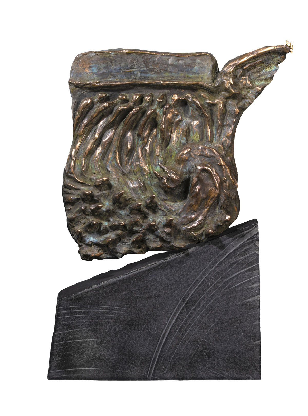 „On the Ledge of Silence“ It is a reflection on a tragic event that shook the entire society. The work was created as a deep reaction to the terrorist attack that took place on December 21, 2023 at the Faculty of Arts of Charles University in Prague. The attack by an active shooter claimed 14 innocent victims among the students. A symbolic processing of one of the most powerful and chilling moments of this event – a photograph that captures students hiding on the outside of a Roman building from deadly danger. It is an expression of their fragility and vulnerability through the metaphor of birds. These young people, who sat on the edge between life and death, are depicted here as tiny bird bodies that are pressed tightly together in anticipation of the inevitable. At the bottom of the sculpture we can see beaks, symbolizing 14 children, young lives that were prematurely and violently torn from the world. The shape of the sculpture resembles a fragment of the ledge under which the students were hiding. The surface is modeled with dynamic strokes that evoke chaos, fear, but also movement and the desire to escape. The overall design has a heavy effect and reminds of the weight of the tragedy it carries. „On the Ledge of Silence“ is a monument to all those who lost their lives, as well as to those who have to live with this experience. It is the embodiment of pain, but also an appeal for humanity, compassion and the search for ways to understand.